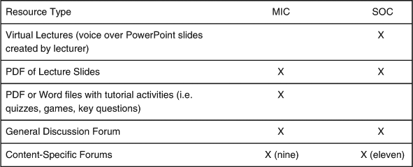 Due to large enrolment numbers (SOC N=145 and MIC N=221), the online space mirrored a more traditional didactic classroom, where students passively received information, albeit via virtual lectures (narrated slides) or electronic handouts, rather than live lectures or tutorials. This structure is commensurable with other initial forays into online education (Tennant, McMullen, and Kaczynski 2009) that rely on familiar, normative pedagogies (i.e. we start with what we know) and are based on materials developed for face-to-face environments (Salter, Pang, and Shrama 2009). Both subjects used an electronic forum structured similarly to the “question and answer” sessions that often accompany face-to-face lectures and/or tutorials. Unlike many other studies of online or blended learning, we examine subjects previously taught only by correspondence (see Schifter 2004), where students had no opportunity to attend lectures, with the exception of a compulsory 4-day residential school on campus for the microbiology students to learn practical laboratory skills.