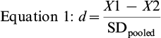 (X1 and X2 are the average performance marks for Group 1 and Group 2 (for example, average class mark from Cycle 1 as compared to Cycle 2), and SDpooled is the pooled standard deviation between the two groups.)
