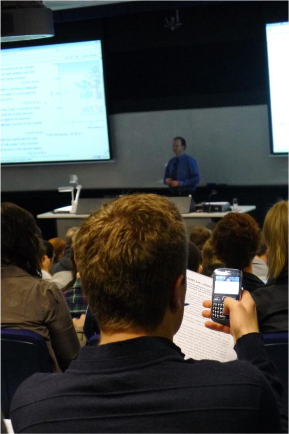 We conducted a trial of using mobile phone voting in three lectures in the undergraduate law course Principles of Public Law (enrolment 460, 2nd semester, 2011). VotApedia (a free mobile phone voting system) was employed for each of three lectures throughout the semester: this allowed an iterative and developmental approach to the implementation and avoided the selection bias and contingencies that would occur with a single implementation. It was decided to introduce three lectures using VotApedia in order to moderate the perception of ‘dumbing down’ or the reduction of content coverage that is so common in the use of such systems and to ensure that student expectations regarding lecture format were still being met (D’Inverno, Davis, and White 2003).