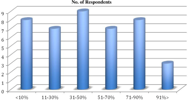 (each option has multiple choices - <10% ∣ 11–30% ∣ 31–50% ∣ 51–70% ∣ 71–90% ∣ 91–100%)