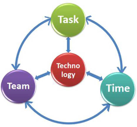 The 4Ts model has been developed to support pedagogical planning and decision-making in the Computer Supported Collaborative Learning (CSCL) design process. An extensive description of the development process and rationale, which led to identifying the 4Ts and a discussion of the 4Ts components, can be found in Pozzi and Persico (2013). The model looks at Task, Teams, Technology and Time as the four main components that the CSCL designer needs to focus on in his/her decision-making process. While designing an online collaborative learning activity, s/he defines the nature of the Task students will be asked to carry out, chooses the Teams’ composition and interaction modes, and identifies the phases of the activity by providing the overall Time schedule. Technology, that is, the medium through which interactions will occur, is also a crucial component the designer is required to select and configure before the CSCL process starts. In the 4Ts model (Figure 2), the designer juggles with these four components, in no pre-determined or mandatory order: each decision concerning any of the four dimensions is influenced by the others and, reciprocally, impacts on them, so that each time the designer takes a decision, s/he has to go back to the other dimensions, to check what the consequences are. Even if a systematic evaluation of the 4Ts approach has not yet been carried out, this approach has been extensively used by its authors and their collaborators in different contexts and at different levels: in particular, the 4Ts have been used both to elicit designs while planning online activities, modules and courses, and to communicate the final designs to the tutors in charge of delivering the same activities/modules/courses. In addition, tutors have often used the 4Ts as a sort of guiding template to structure instructions for students on how to carry out the proposed activities.