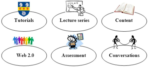 Some of the templates conceptualised here are customised for a traditional, face-to-face, research-intensive university based on the British (Oxbridge) tutorial model. In such a university, students are free to select which lectures they wish to attend to support their learning pathway, and undergraduate students participate in small group tutorials under the guidance of an expert tutor; hence, the inclusion of a ‘Lecture series’ template and a ‘Tutorials’ template. In a traditional, primarily face-to-face, research university based on the American model, with discussion or recitation components to classes, these two templates might be combined into what might be called ‘Enrichment’ (offering supporting learning materials, over and above the basic ‘Content’ provision of organisational information).