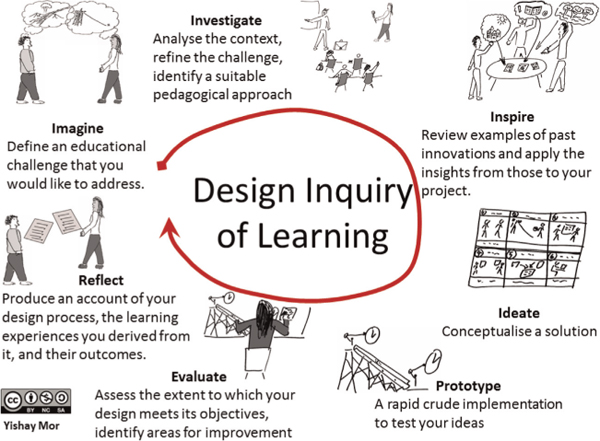 Laurillard (2012) argues that teaching should be repositioned as a design science, in line with Simon’s (1996) paradigmatic distinction between natural science, which describes how the world is, and design science which is concerned with how it should be. Design, in this context, is the informed creative practice of devising “courses of action aimed at changing existing situations into desired ones” (Simon 1996, p. 129). Ideally, we would want teachers to adopt a design science stance towards their practice: “Ideally, teachers should be able to enact design science as part of their normal professional practice” (Laurillard 2012, p. 7). Yet, practitioners do not have the skills or the resources required to conduct a full-scale, scientific study. Instead, we propose a model of DIL – a projection of the ideal of design science into realistic settings. DIL combines an inquiry-based learning approach with a design-based scientific paradigm.