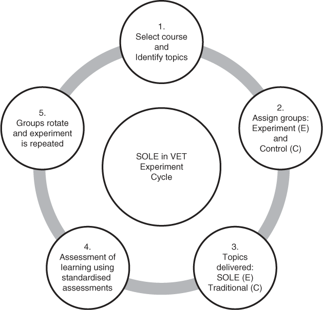 The research project set out to explore whether the methodology of Self-Organised Learning Environments (SOLEs) as developed by Sugata Mitra in the school sector (Dolan et al. 2013), could be applied successfully within VET courses. Study experiments have taken place to date with 150 students across three VET colleges – two in the UK and one in India – in the subject areas of Automotive Studies, Beauty Therapy, Business, Construction, and Hairdressing. The two UK colleges were identified on the basis of having different demographic and curriculum profiles whilst operating in the same VET system, and the inclusion of an Indian College would enable comparisons to be made with other VET systems. The choice of India was further influenced by the recent focus given to the Indian VET system by the UK Government Department for Business Innovation and Skills (BIS), and the formation of Association of Colleges (AoC) India, launched by the UK Minister for Skills and Enterprise, on a delegation to India in 2013 (Linford 2013).