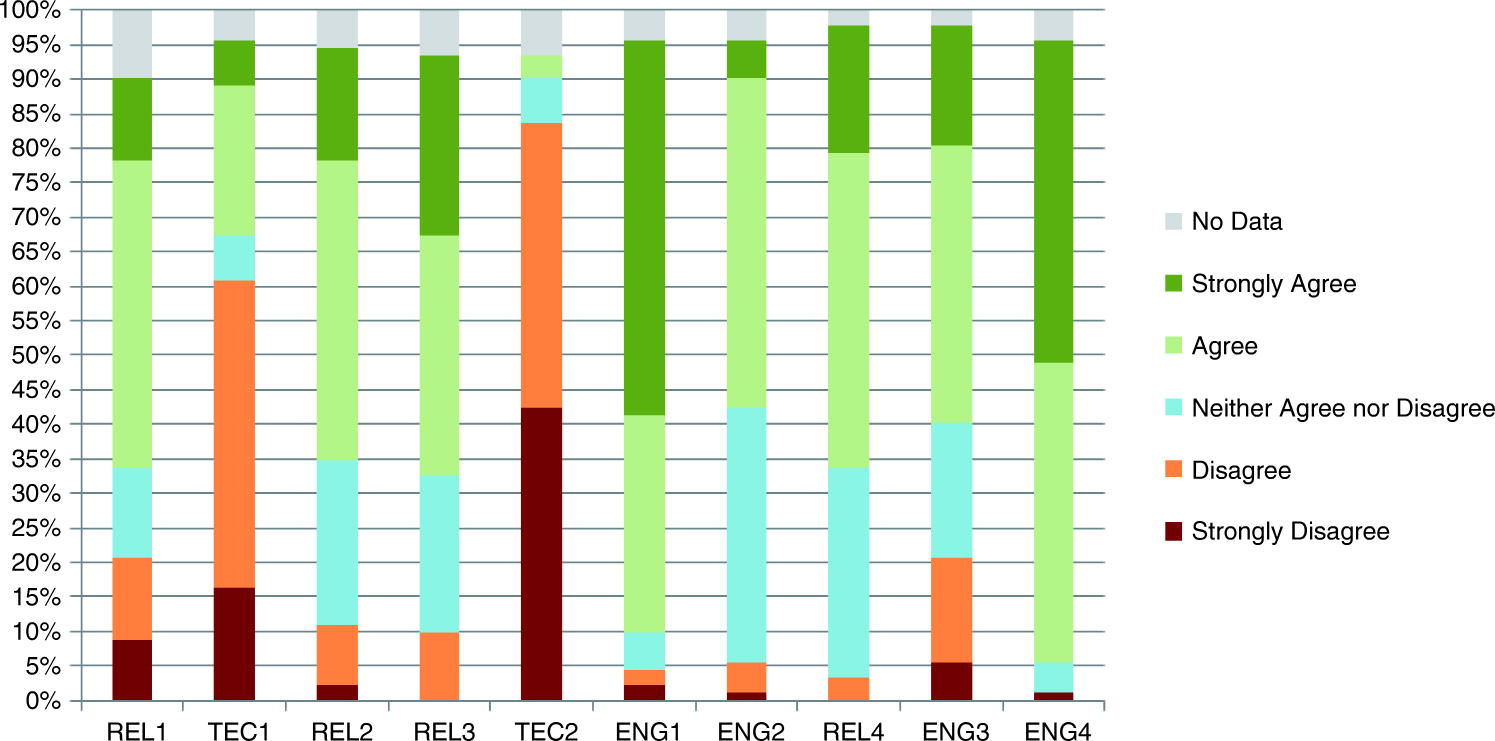 The frequency of responses for each question appears in Figure 1.