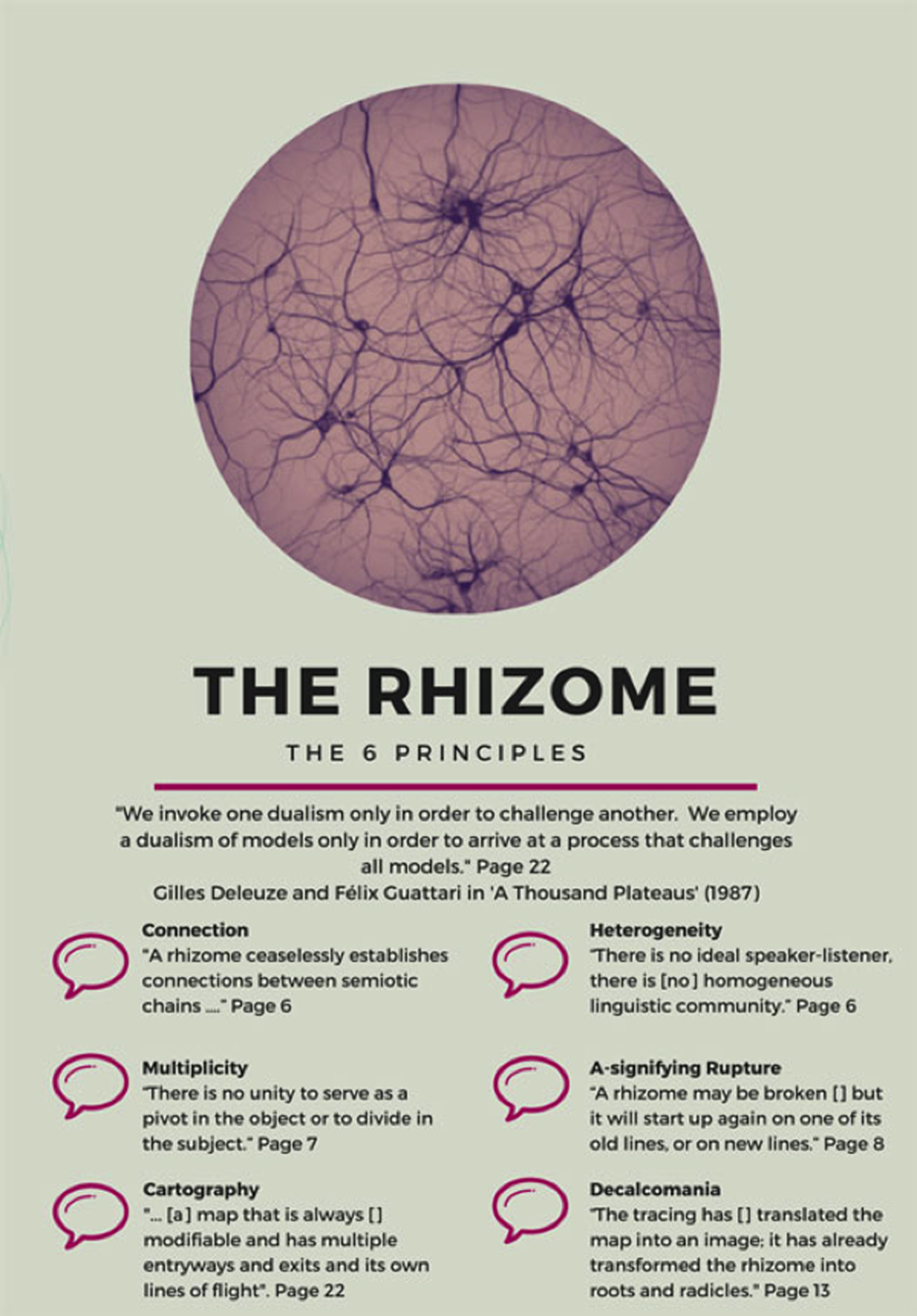 Deleuze and Guattari’s six principles for rhizomatic thinking (Mackness, Bell and Funes 2015).