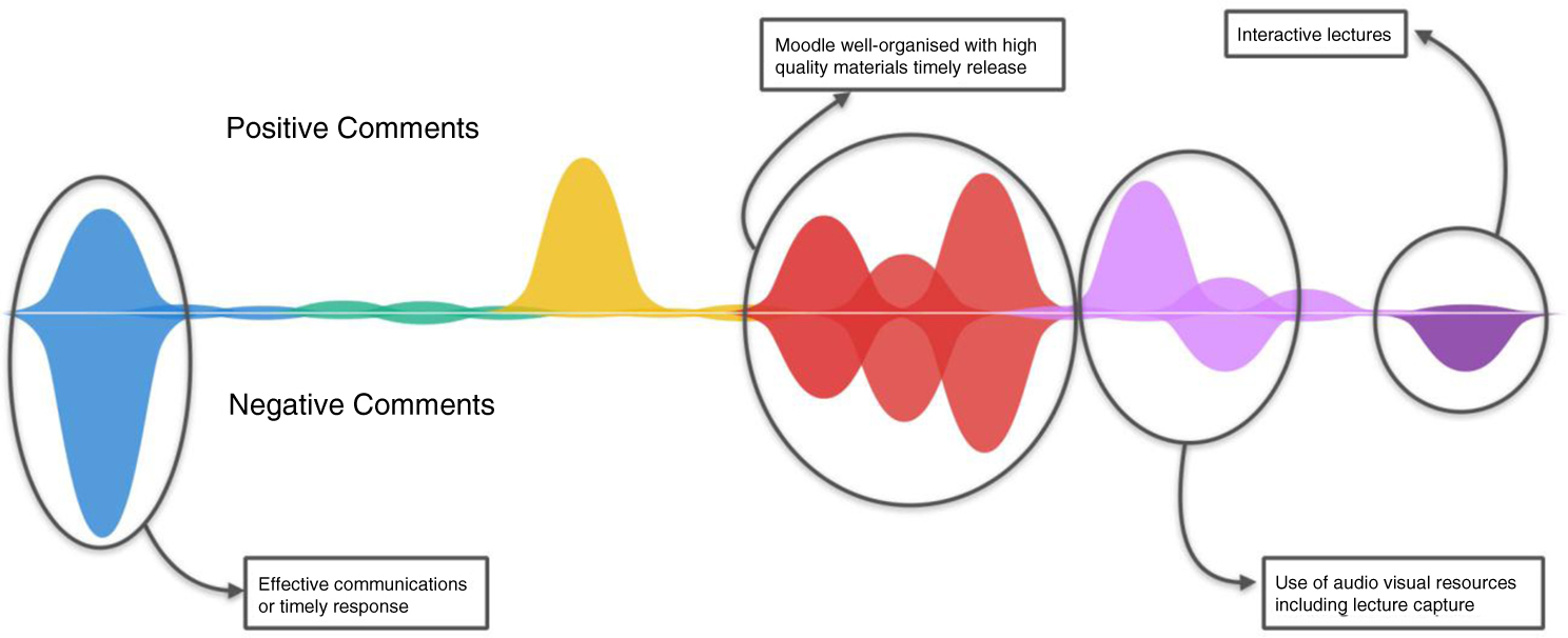 This ‘mirroring’ was not a contrary report by the students but indicated an inconsistent experience across programmes. Used as a comparator, ‘Communication’ could be reported positively in one unit that was utilised as a benchmark and to report a ‘poor’ experience in a different unit. So students are not commenting differently about the same unit but are highlighting that communications in some units/programmes are perceived as effective and in others are not. Students are positive about a fast response to questions and highly frustrated where this is not the case.