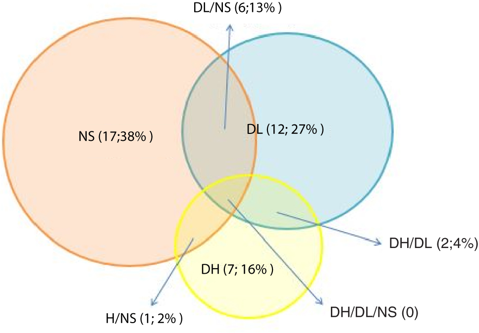 | 4 – View on DS | Classification of research taking into consideration the research area as well as the theoretical approach: a. NS b. DH c. DL d. NS/DL e. NS/DH f. DL/DH g. DL/DH/DS |
