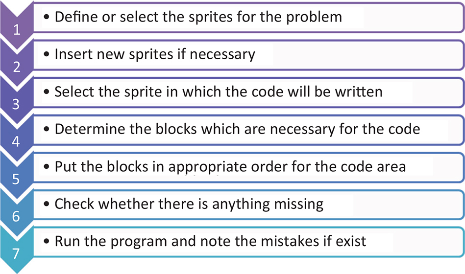 Many young students who have no experience may hit a cognitive barrier at the beginning of programming learning process (Smith, Cypher, and Tesler 2000). During programming, students generally want to achieve the tasks or solve problems as quickly as possible. In this sense, Scratch as a visual programming platform may be used in order to visualise the programming process. It may be useful to visualise not only the typical programming components (variables, arrays, I/O components, etc.) but also the main programming concepts (sequences, operators, conditions, loops, etc.). Resnick et al. (2009) stated that Scratch blocks may facilitate the programming mechanics by eliminating syntax errors, providing feedback on the location of command blocks and giving immediate feedback to the appropriate codes. In addition, Gadanidis et al. (2017) reported that they also affords new approaches to mathematics problem-solving. In this study, using Scratch components somehow could shorten the necessary codes required to achieve the tasks. In a similar vein, Meerbaum-Salant, Armoni, and Ben-Ari (2013) argued that Scratch may eliminate the extraneous cognitive load induced from syntax and facilitate the programming process by the visualisation. However, the findings of this study indicated that it is not easy to achieve the tasks based on the logical and conceptual knowledge of programming using Scratch.