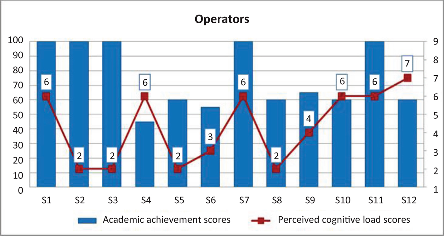 In addition, independently from context, students who were accustomed to the interface perceived less cognitive effort. In a recent study, Sweller (2016) argues this effect as the expertise reversal effect. It is about the perceptions of element interactivity. When students are novices, element interactivity can be considered high and when they become experts, element interactivity is likely to be low. In this study, the reason for their lower AASs may be due to the fact that various code blocks were being used in the operators concept and assigning multiple variables and using variables in the process may have been challenging for the students.