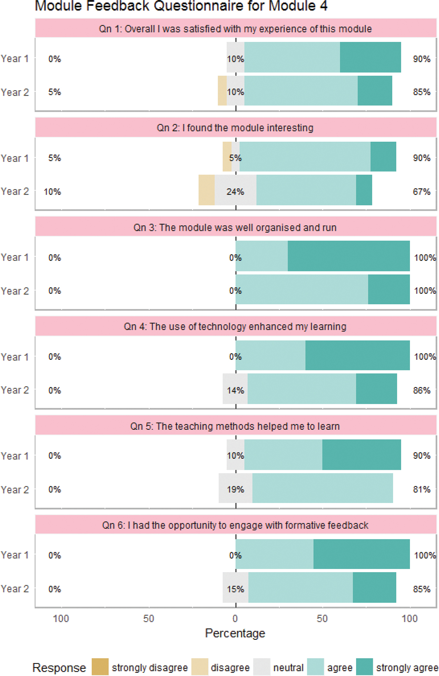 Figure 3. Module Feedback Questionnaire responses provided by two student cohorts on Module 4.