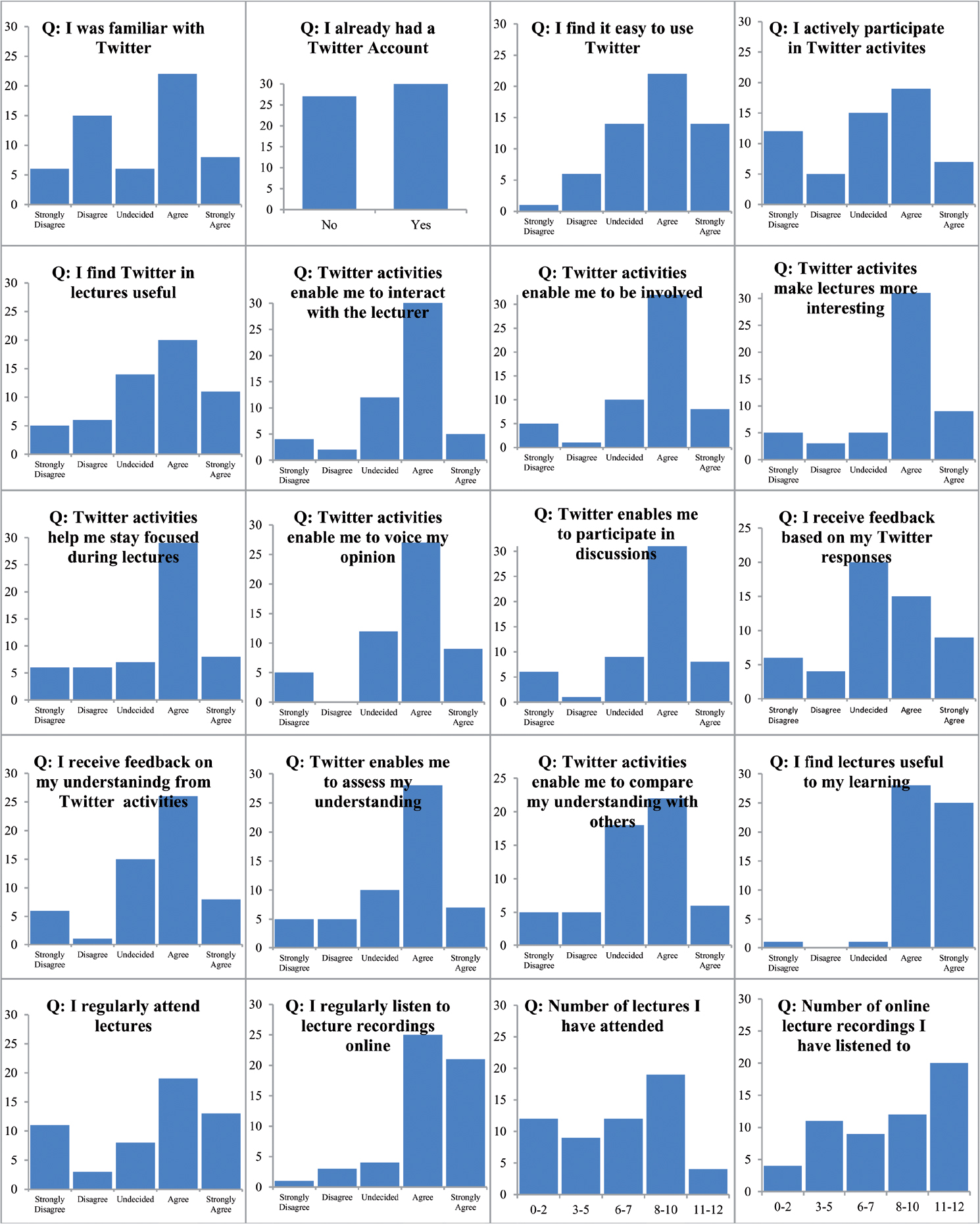 | 8 | Twitter activities make lectures more interesting | 1 | 2 | 3 | 4 | 5 |
