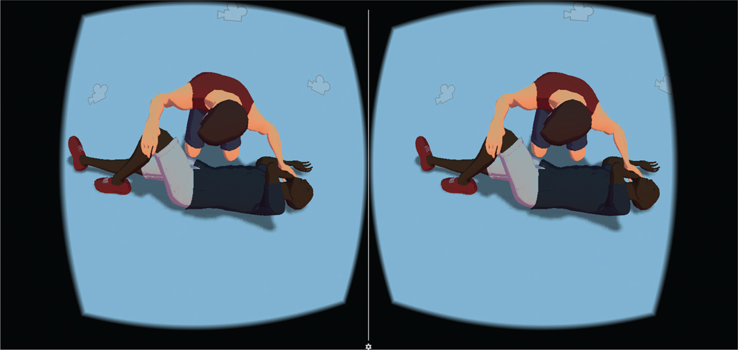 Participants reported that they predominantly used only two view positions. These were the front and back, as they facilitated oversight of the entire action sequence. A common request was to add two more camera positions. One directly above the demonstration for overview, and one directly from the viewpoint of the ‘Helper’ avatar. The latter viewpoint was to experience observation of the action sequence, as if performing the recovery position. Viewpoints positioned near the head of the casualty were deemed too close to observe any meaningful details by some participants. The proximity of these viewpoints to the casualty forced users to translate their head position for better vantage. This highlights a limitation of mobile VR. The positional translation of the HMD is not tracked in 3D space and limits the user’s natural head movement to rotations only. Participants described this limitation as frustrating.