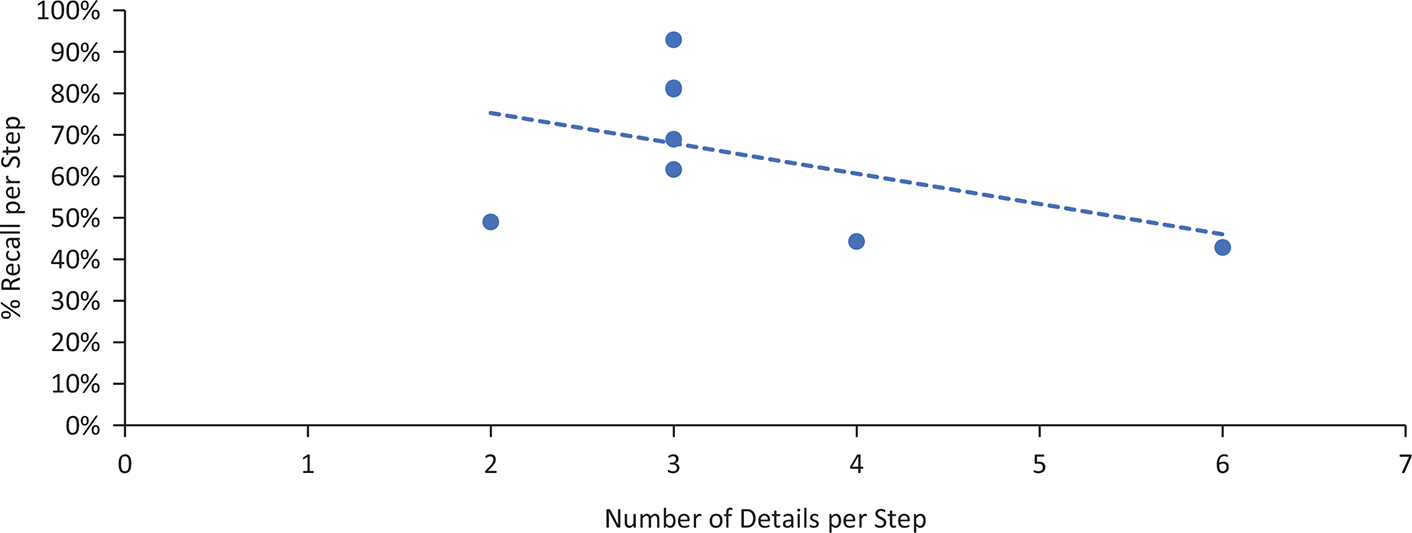 Figure 7. As the amount of details in each step increased, the % of information recalled decreased.