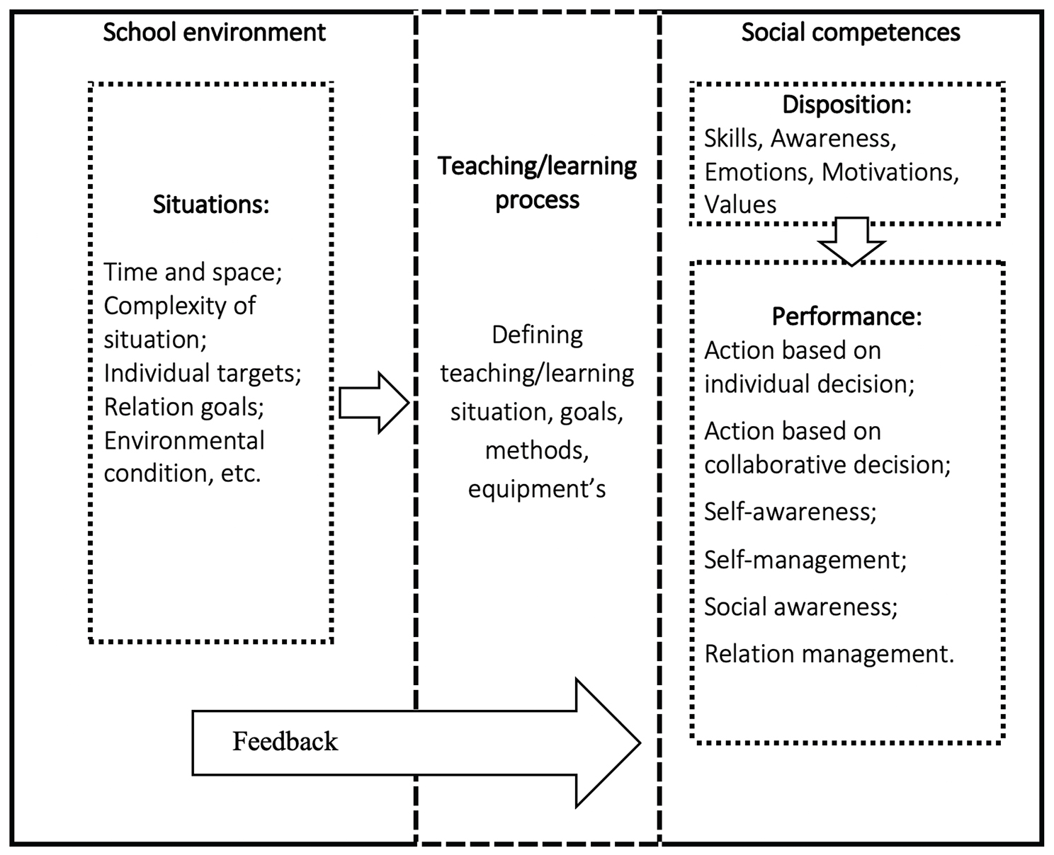 Social competences and EI are those skills and methods that the individual uses to successfully fulfil his or her own needs within a social environment, depending on different life situations, with the purpose of achieving personal growth and progress, and of being able to empathise and share one’s emotions with others. These are skills that enable a person to live a quality life, in harmony with oneself and the surroundings. They refer to the way an individual responds and cooperates in interpersonal relationships, which occurs at three levels (Rozman 2006; van der Stouwe et al. 2018):