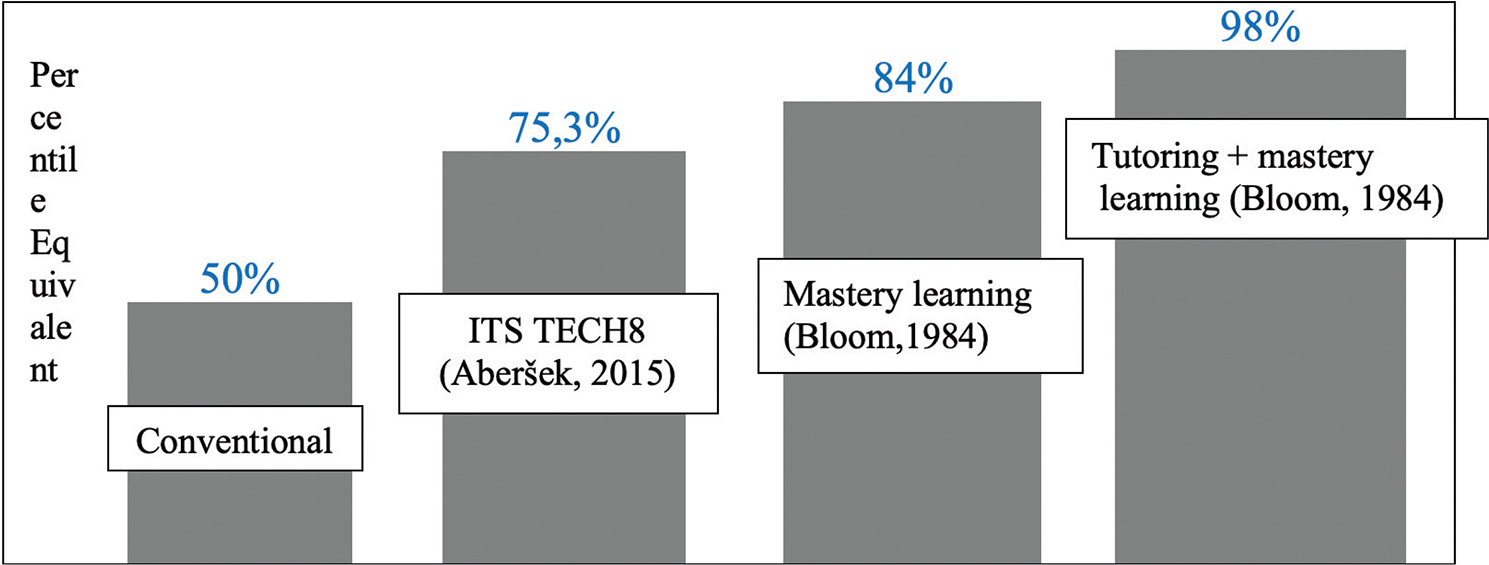 Many authors point out the positive influence of innovative learning environments on students’ cognitive achievements. Howard-Jones, Pickering, and Diack (2007), Aberšek (2013), Aberšek and Dolenc (2015) and McNaughton et al. (2018) have proven the positive impact of using learning environments supported by ICTs and intelligent tutoring systems (see Figure 2) on the development of creative thinking, critical thinking and problem-solving. According to Bloom (1956) and Anderson and Krathwohl (2001), these are called high cognitive levels and are also in accordance with the Bloom’s Digital Taxonomy (Churches 2008). According to the pedagogical doctrine, this is a consequence of the individualisation, personalisation and differentiation offered by intelligent learning environments. The positive influence of innovative learning environments on students’ cognitive achievement is not an unexpected result.