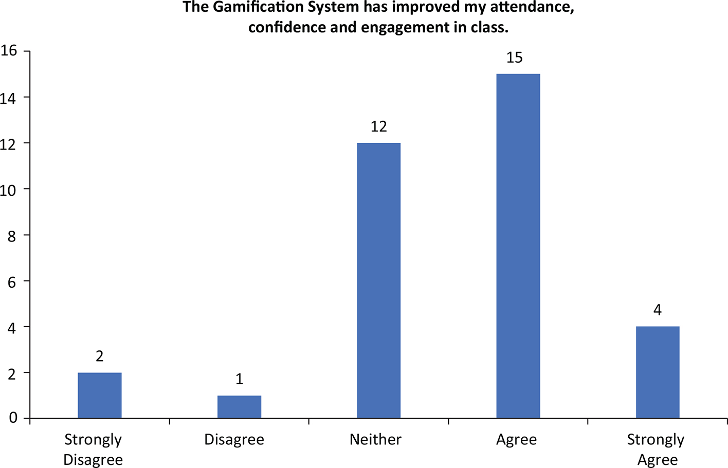 Figure 1. Survey results for ‘The Gamification system has improved my attendance, confidence and engagement in class’.