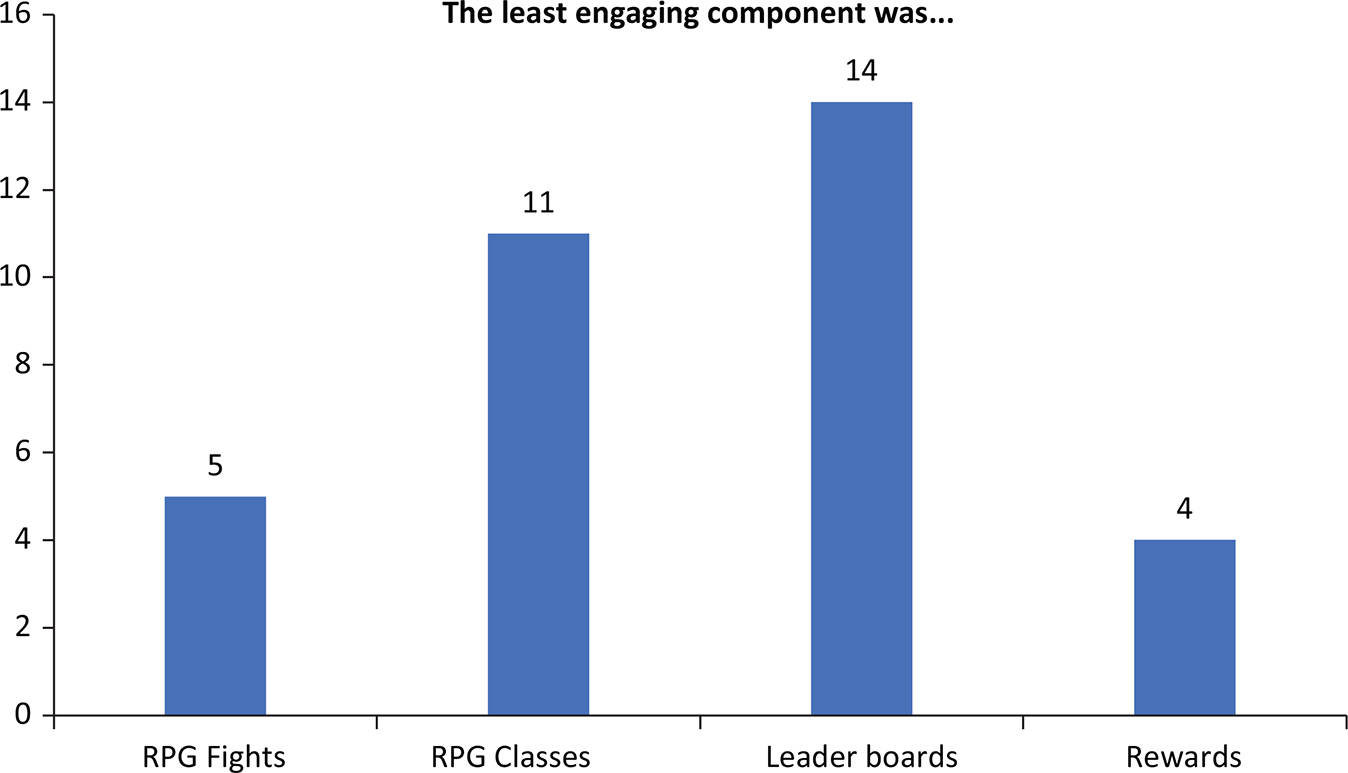 Additionally, this method is best suited for classes with small to moderate number of students, that is, 16–32, since each RPG fight would take approximately 4–8 min to resolve and this is multiplied by the number of teams. The real feasibility behind using this framework relies on two factors: