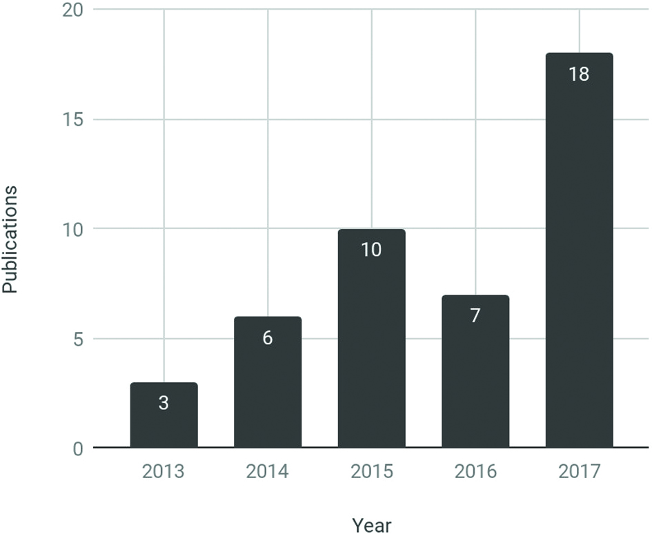 The articles reviewed were published between 2013 and 2017 (Figure 1).