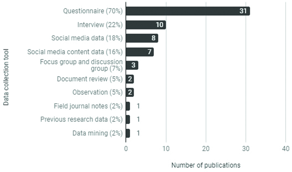 Figure 5. Distribution of data collection tools by publication.