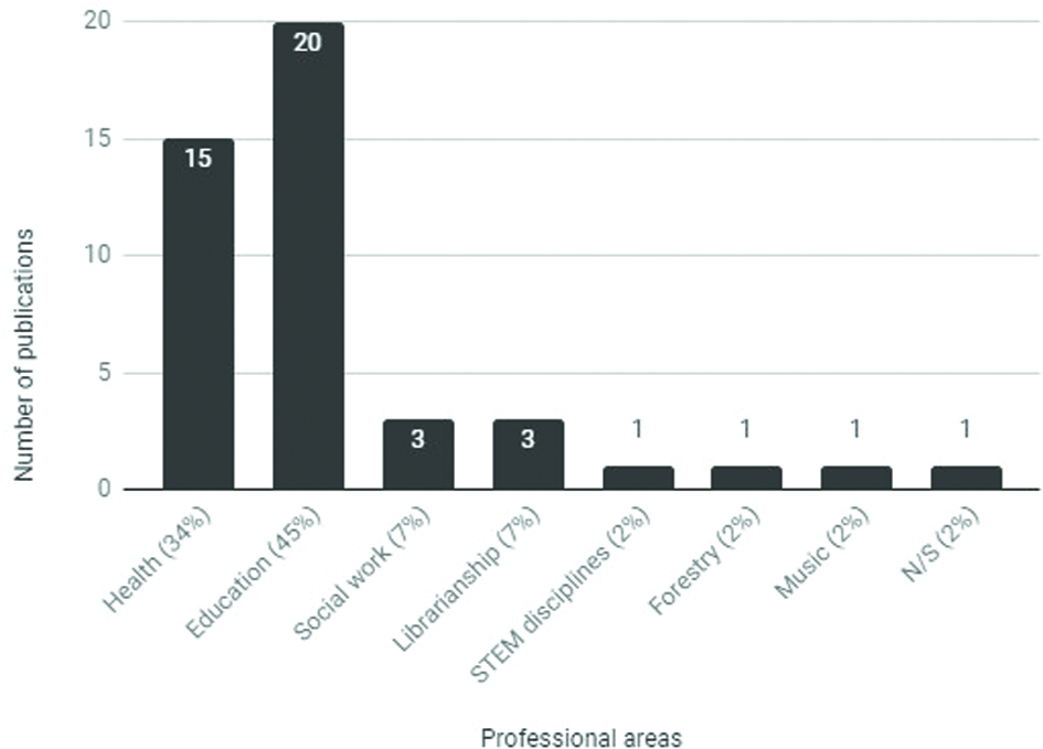 Professional disciplines that were the subject of study in the set of articles were also identified and categorised. This categorisation is shown in Figure 6.