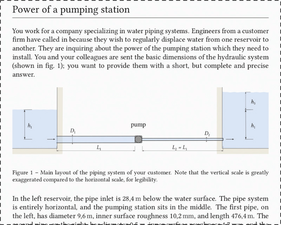 Note: In the provided text, the dimensions and input data for the problem are unique to each student. The resulting problem answers may vary by several orders of magnitude. In this project, assignment illustrations were not adapted to the the custom values in the problem; however, this was implemented in a separate implementation of the programme (Magdowski 2019b).