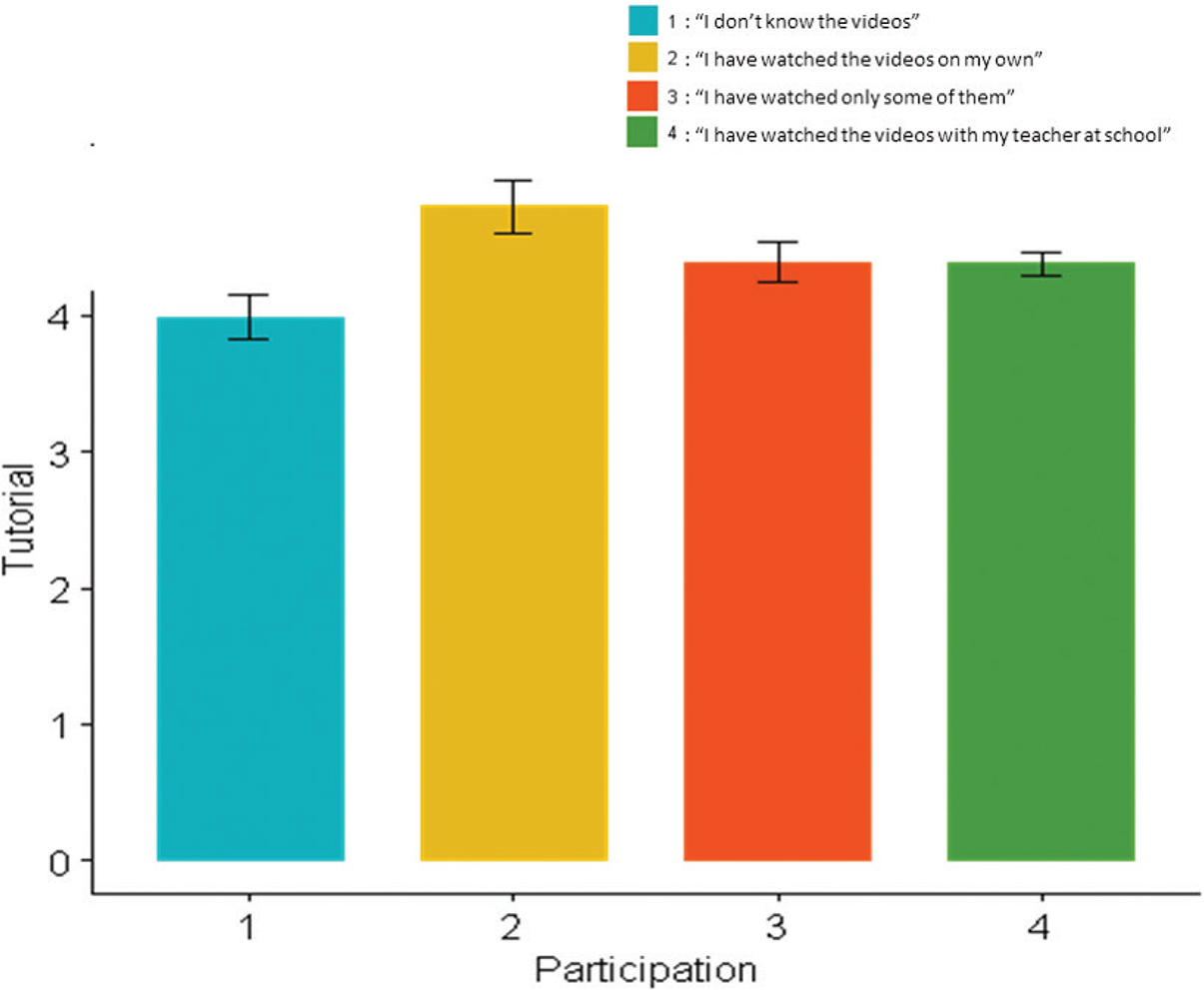 Figure 4. Bar plot showing the average values for Tutorial variable, with standard error bar, for every participation group. Kruskal–Wallis test showed no significant differences between groups.