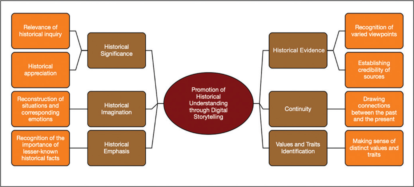 This study has shown that the promotion of historical understanding could be facilitated by students’ engagement in a digital storytelling project. The thematic analysis of qualitative data surfaced six major themes that were relevant in explaining the concept of historical understanding.