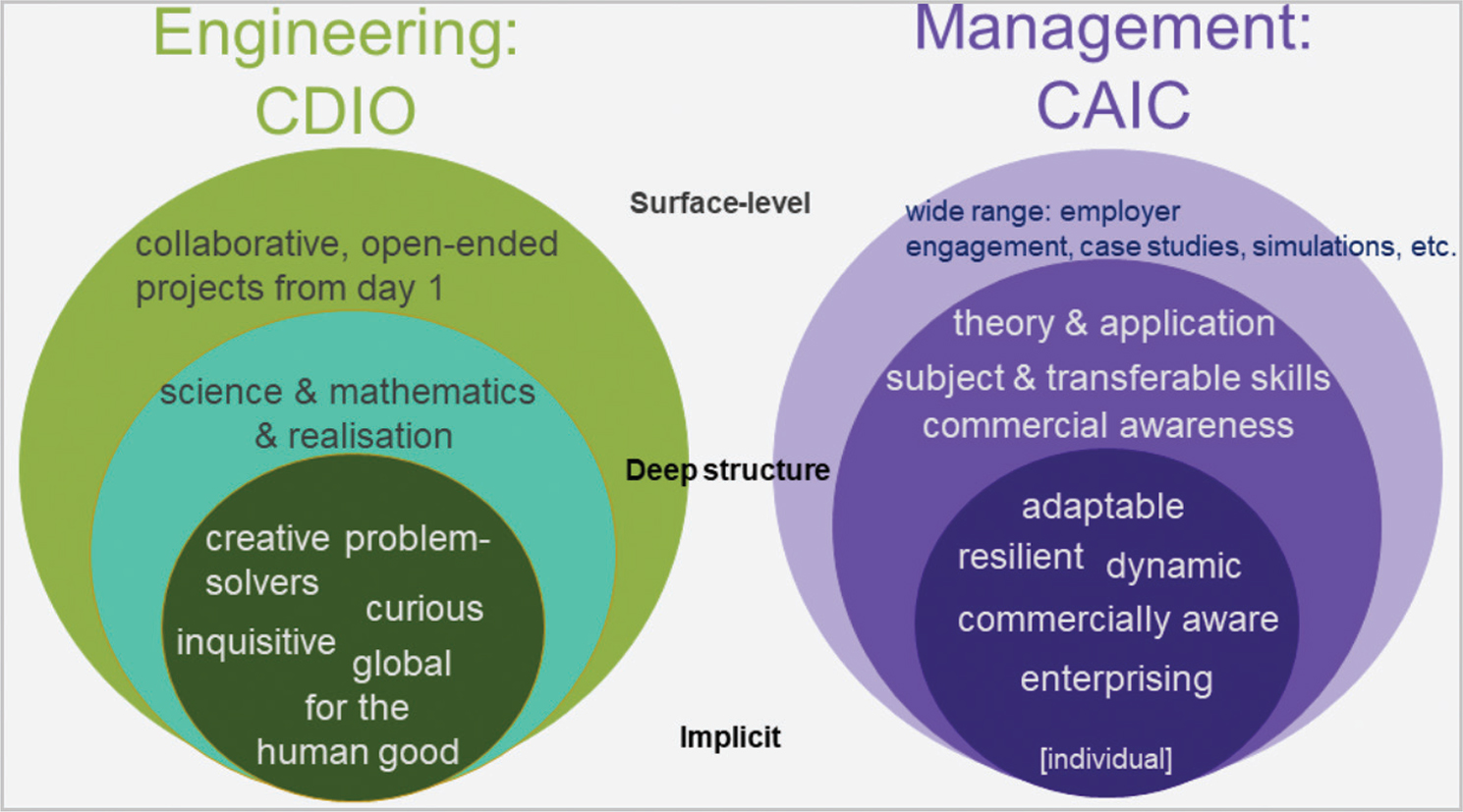 Figure 6. Signature pedagogies of engineering and management.